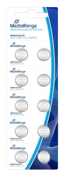 ბატარეა Premium Alkaline Coin Cell MediaRange AG13/LR44 MRBAT113, 10 ცალი