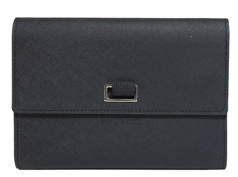 ბლოკნოტს აქვს ტყავის ყდა, მაგნიტური ჩამკეტი, ბიზნეს ბარათების ჩასადები