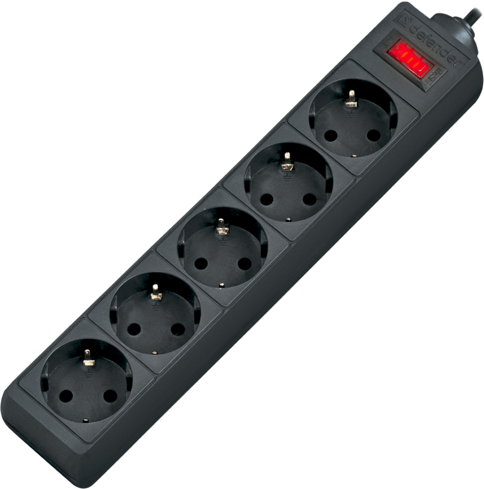 დამაგრძელებელი ქსელის დამცავი Defender 5 ჩამრთველიანი, შავი