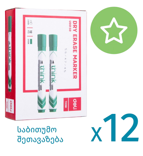 დაფის მარკერი Deli Think 2 მმ. მწვანე X 12 ცალი