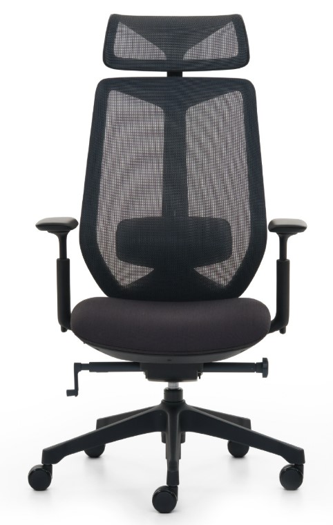 The chair features a synchro mechanism, with the backrest lockable in three different positions.