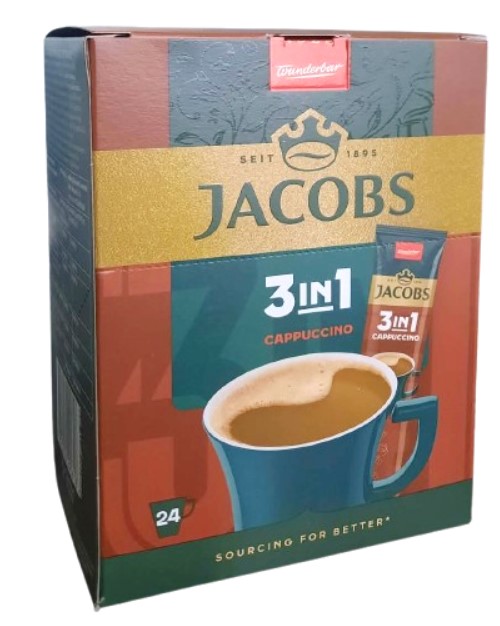 ხსნადი ყავა Jacobs Cappuccino, 24 ცალი, 12.5 გრ. შეფუთვა