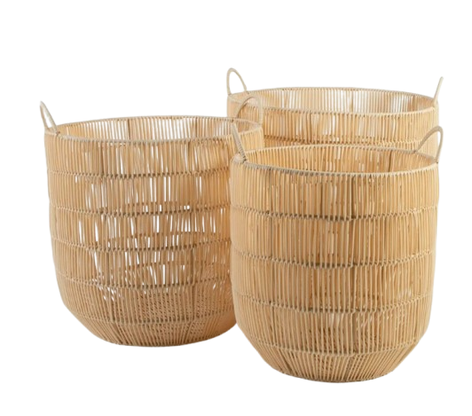 მოწნული კალათა, 3 ცალი, კრემისფერი