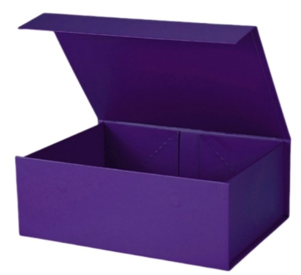 მყარი მუყაოს სასაჩუქრე ყუთი მაგნიტური ჩამკეტით, 35*23*10 სმ. იასამნისფერი