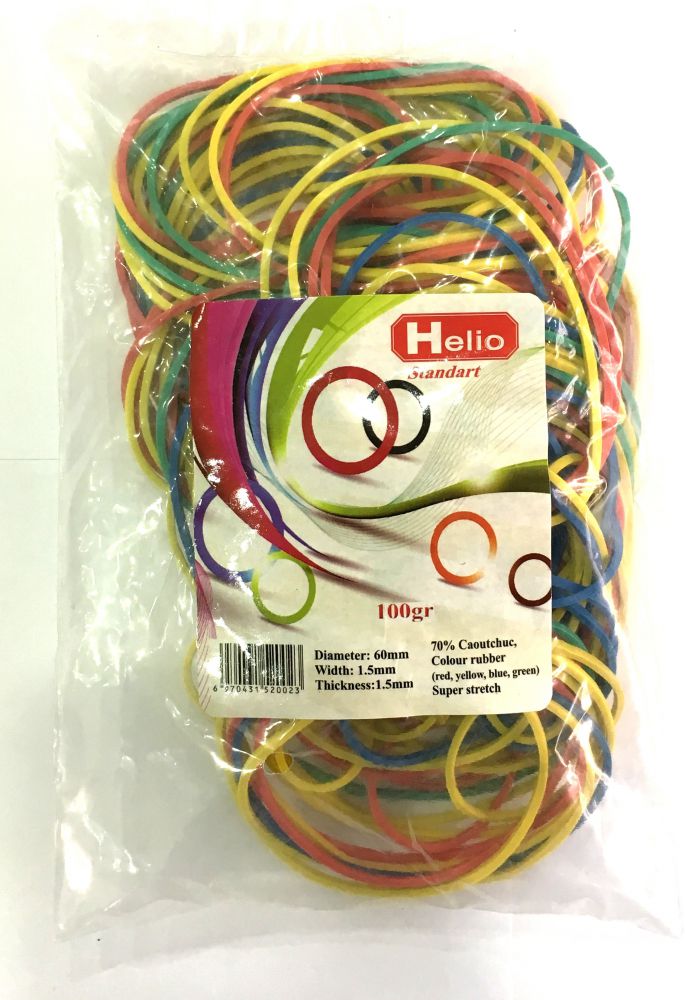 ფულის შესაკრავი რეზინი, ფერადი, Helio 100 გრ.